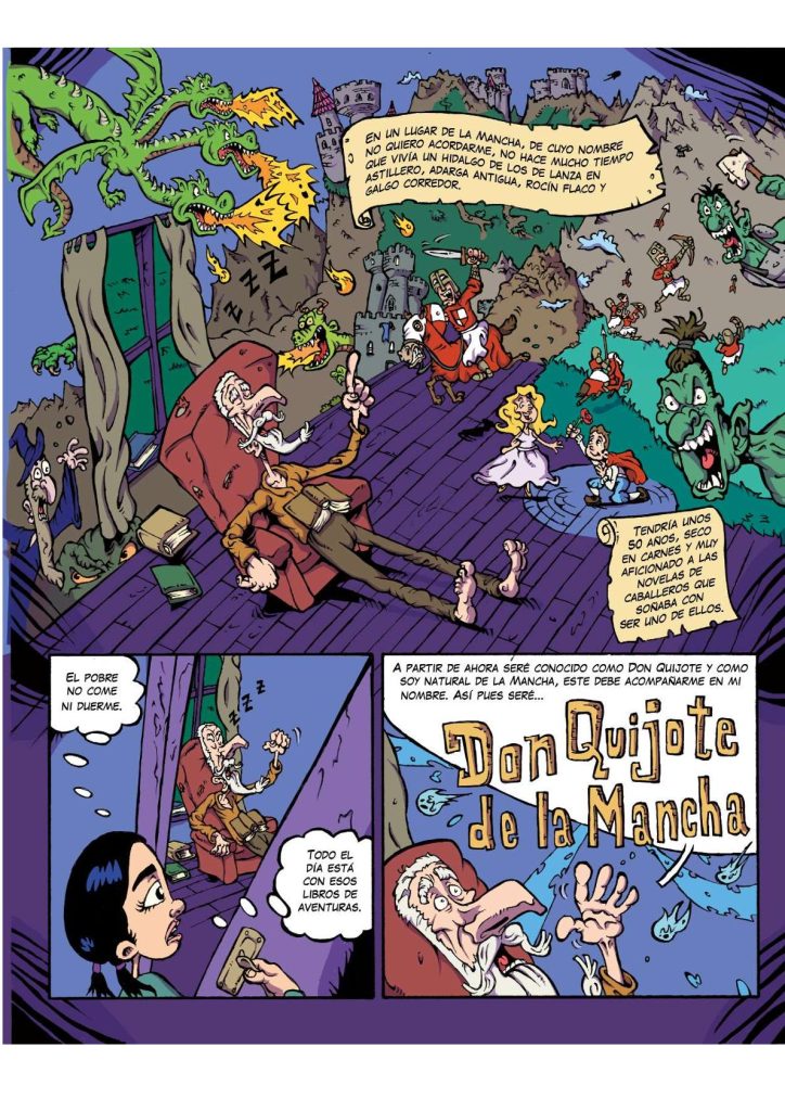 | Don Quijote de la Mancha de Miguel de Cervantes no es solo un clásico de la literatura. ¡Es toda una experiencia a descubrir! En este cómic vivirás romances, humor, acción y emociones al lado de los carismáticos Don Quijote y Sancho Panza que se enfrentan a un sinfín de problemas. Adaptamos la obra completa y todas sus aventuras. Descúbrelo en esta original adaptación de la novela más vendida de la historia. ¡Vive las aventuras más locas del medievo! |