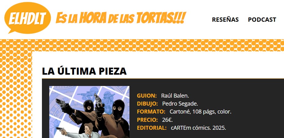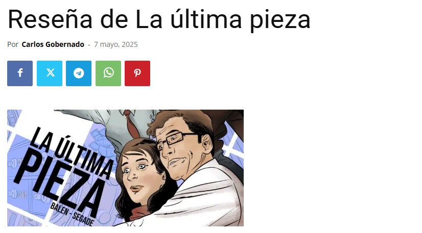 ![]() | La última pieza, de Raúl Balen y Pedro Segade reseña por Zona Negativa |