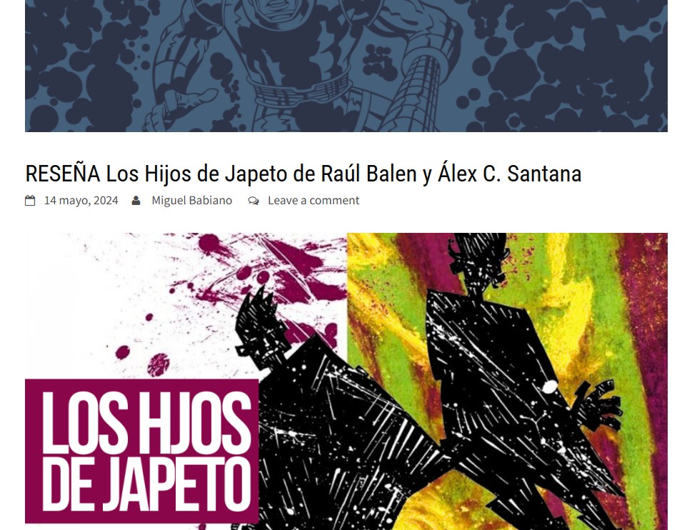 ![]() | RESEÑA Los Hijos de Japeto de Raúl Balen y Álex C. Santana reseña de Tomos y grapas |